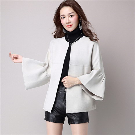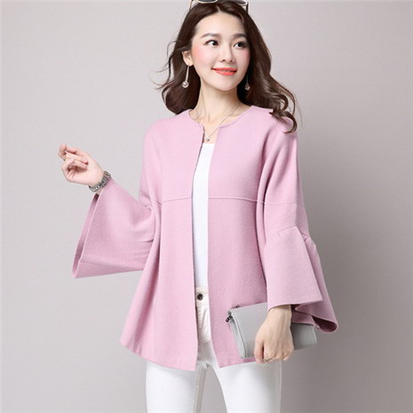 新款宽松喇叭袖针织衫女开衫圆领大码毛衣