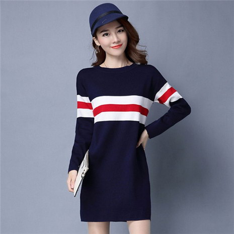 秋装新款女装中长款针织毛衣裙