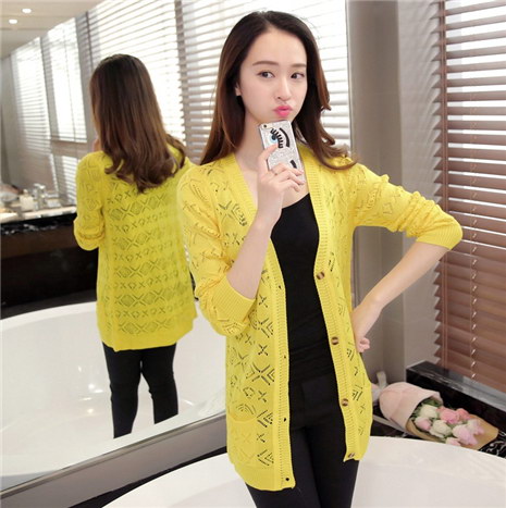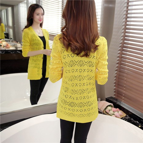 中长款镂空口袋针织衫开衫毛衣轻薄外套